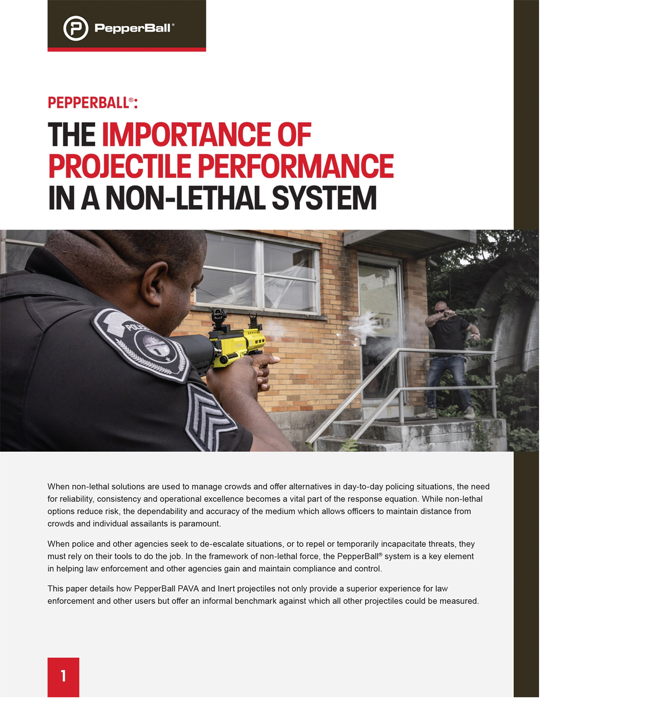 This paper details how PepperBall PAVA and Inert projectiles not only provide a superior experience for law enforcement and other users but offer an informal benchmark against which all other projectiles could be measured.