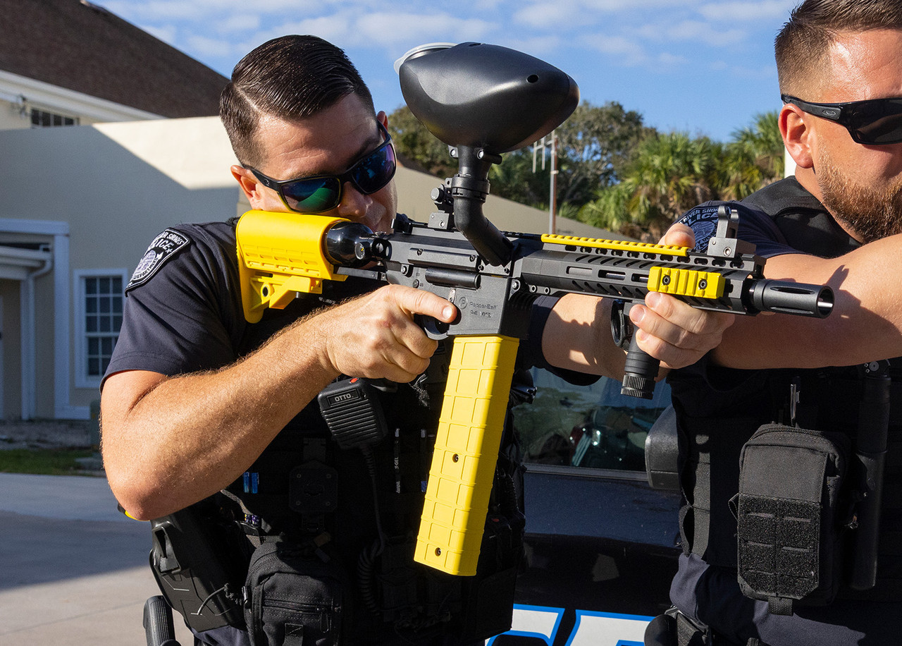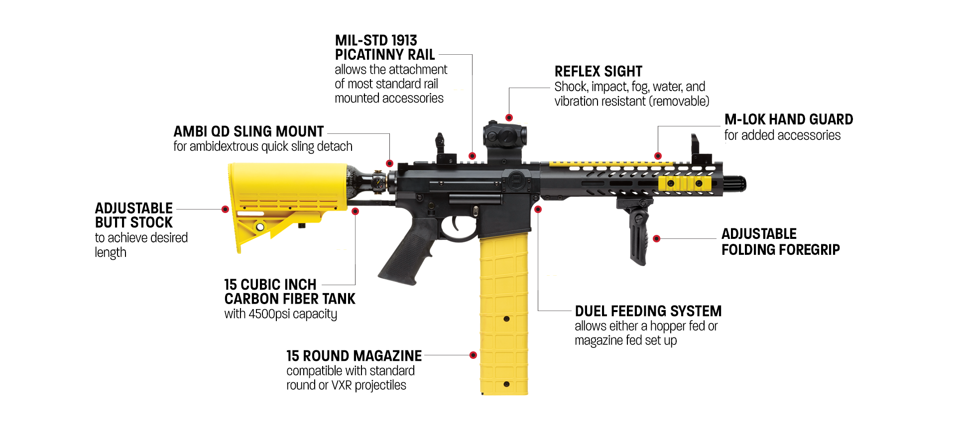 The recoil-free operation of the VKS PRO PLUS is a crucial feature, ensuring precision and stability, which are vital for accuracy in high-pressure scenarios. Safety and control are paramount, with features such as a flip safety switch, adjustable folding foregrip, and an ambidextrous quick disconnect sling mount. The inclusion of an M-LOK handguard allows customization options for additional tactical accessories and it’s compatible with the PepperBall SplitShot™ , adding another layer of versatility to the tactical toolkit. The VKS PRO PLUS is a dependable partner in maintaining law and order, emphasizing any agency’s commitment to safer policing.