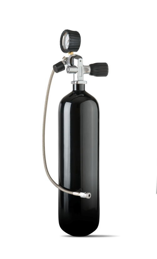 The PepperBall 3 Liter Mobile Fill Bottle is a portable, DOT-approved solution for refilling 5-10 tanks up to 4500 PSI, offering reliable performance with a 15-year service life.